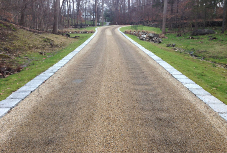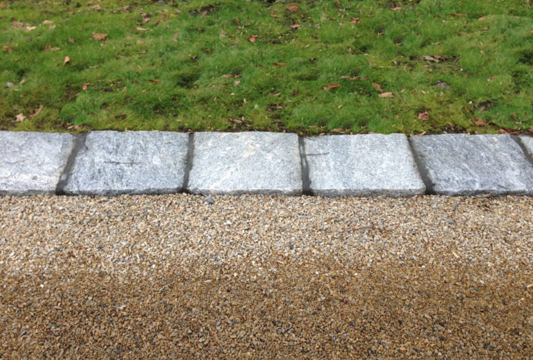 This salt and pepper split and hand chiseled granite offers a larger alternative to cobblestone and belgium block.