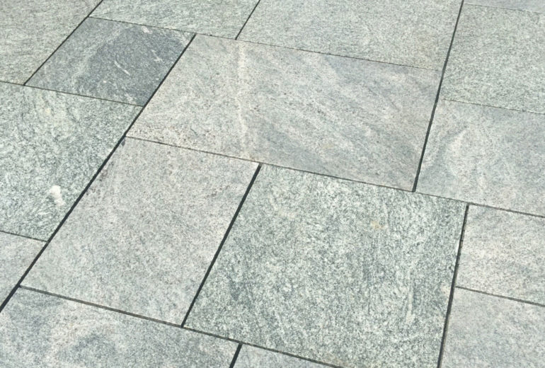 Manchester Granite Flagging is a medium to light grey granite with white and dark grey veining. The variation in this granite creates both a refined and striking look in hardscapes.