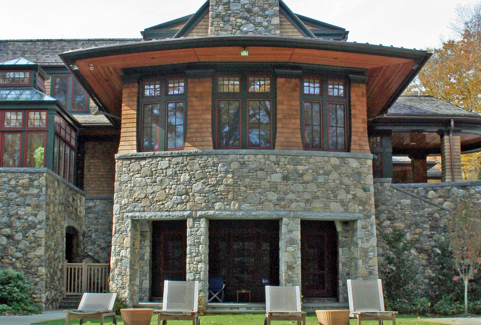Reclaimed granite headers add a beautiful accent to frame the top of doors , windows, and any open access.