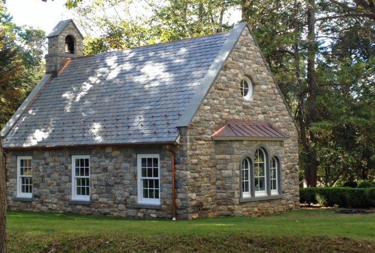 The roughly square and rectangle pattern that is installed on this charming Church has a classic look that is timeless. The wider flush joint produces a softer look with fewer shadows.